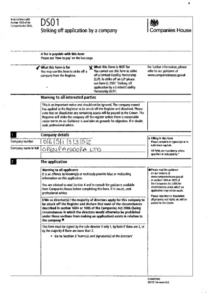 Strike-off as requested by a company, of and by openpandora Ltd. part 1 of 2 Available at http://craig.gp2x.de/liqform.zip