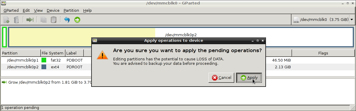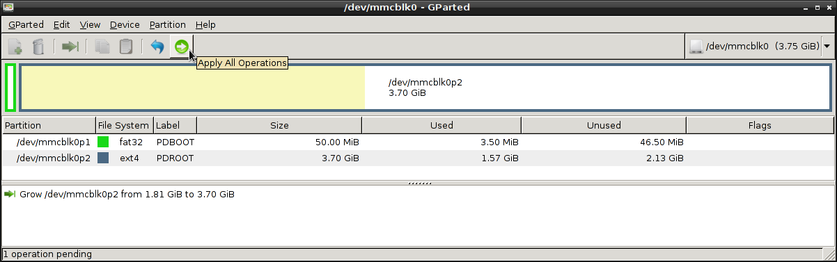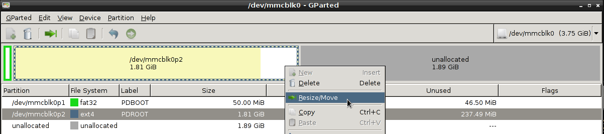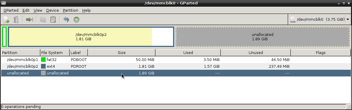 | 17:38, 2 January 2014 | Gparted resize 006.png (file) | 49 KB | Stackshadow | Screenshot of gparted to resize an SD-Card | 1 | |